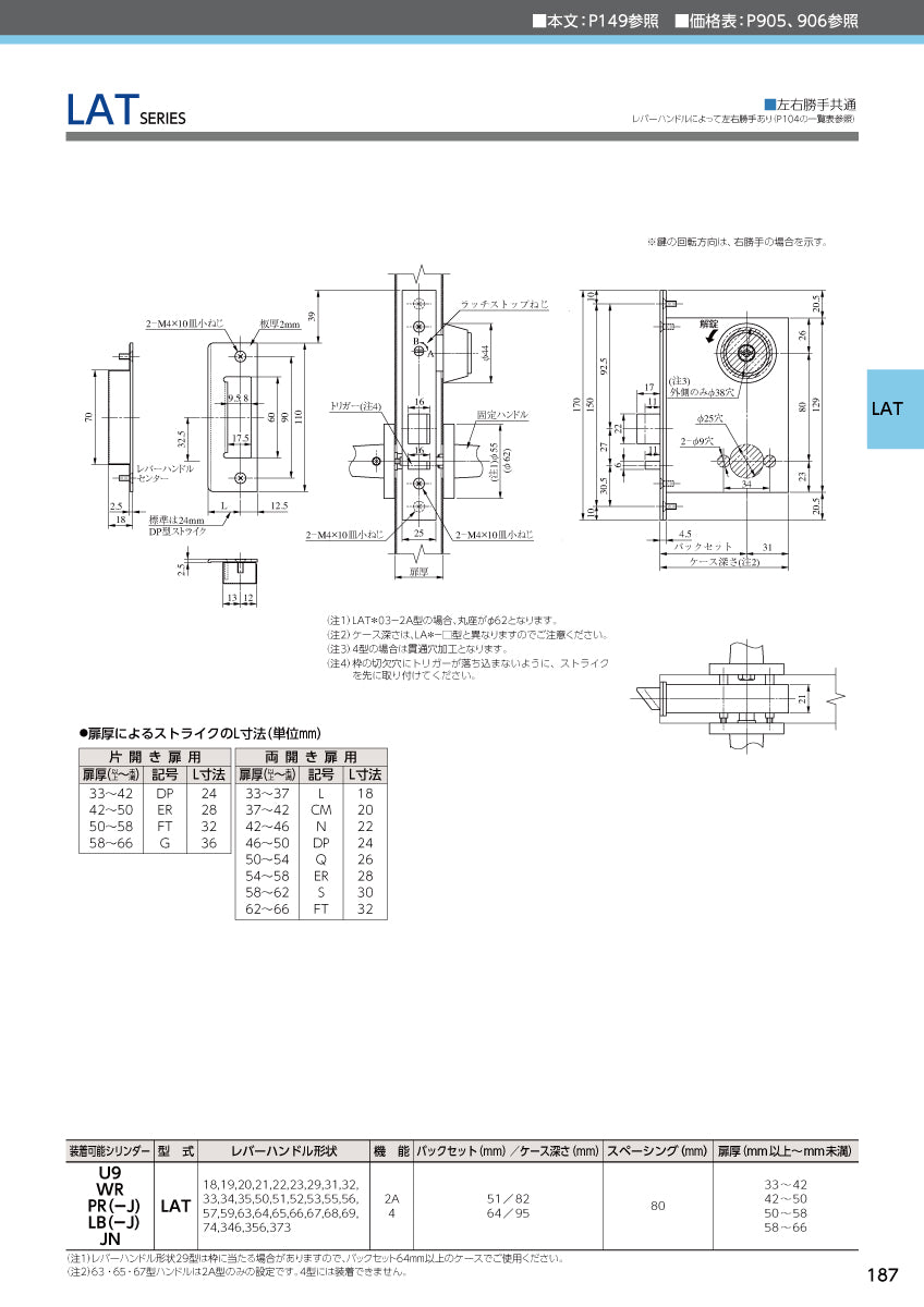 美和ロック レバーハンドル錠(自動施錠タイプ) U9 LAT23-4 片開き用 SV【外側 シリンダー・内側 シリンダー, 23タイプ, LATシリーズ, ミワ, MIWA】