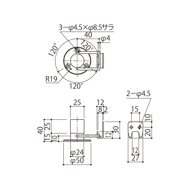 - 受け取付ビス:呼び3.5×16トラスタッピンネジ1種⊕SUS:2本付