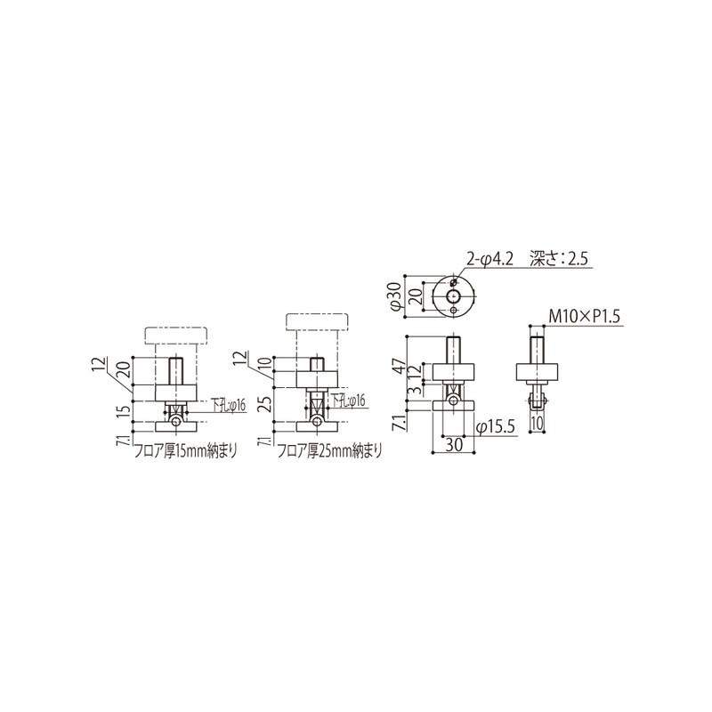 シブタニ OAフロア対応アンカー DCB-20(ハンガーボルトタイプ)【ドアーストップ, 戸当り, ハードウェア金物, SYS, Shibutani】