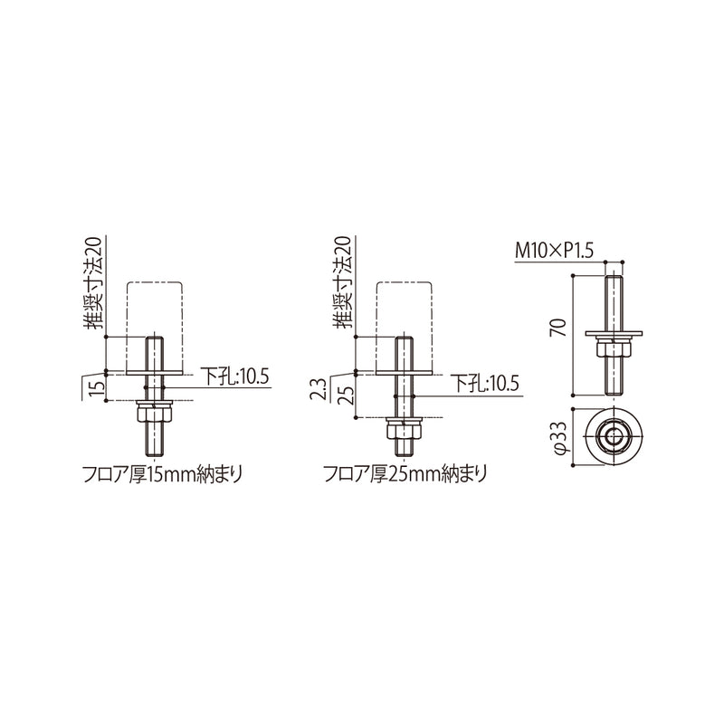 シブタニ OAフロア対応アンカー DCB-21A(六角ボルトタイプ)【ドアーストップ, 戸当り, ハードウェア金物, SYS, Shibutani】